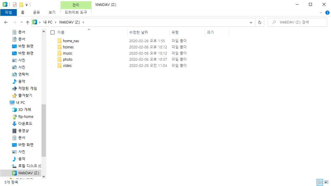 WebDAV 연결된 화면.