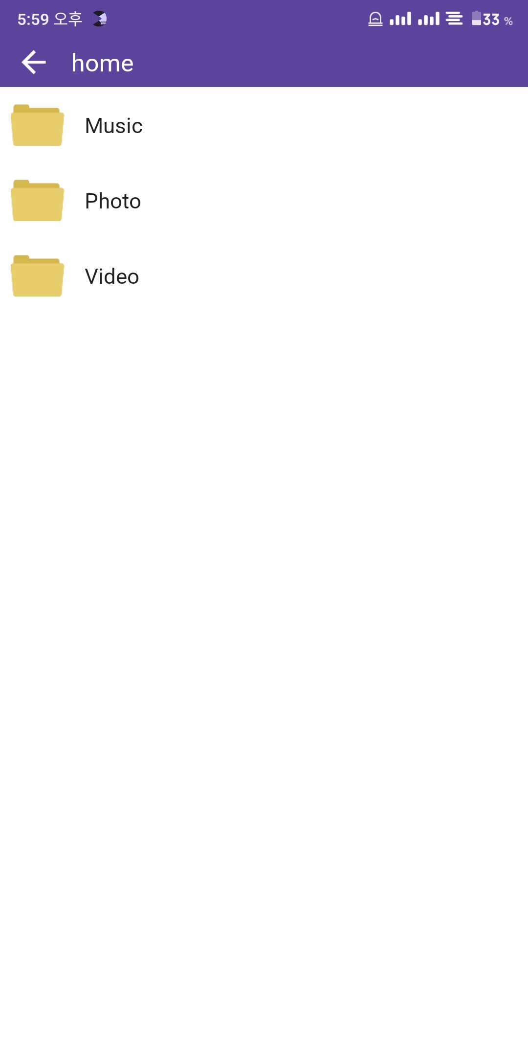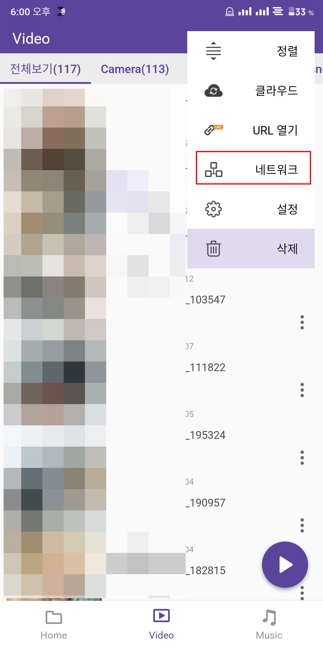 -> home 선택 -> 미디어 서버 접근 -> 파일 선택하여 재생