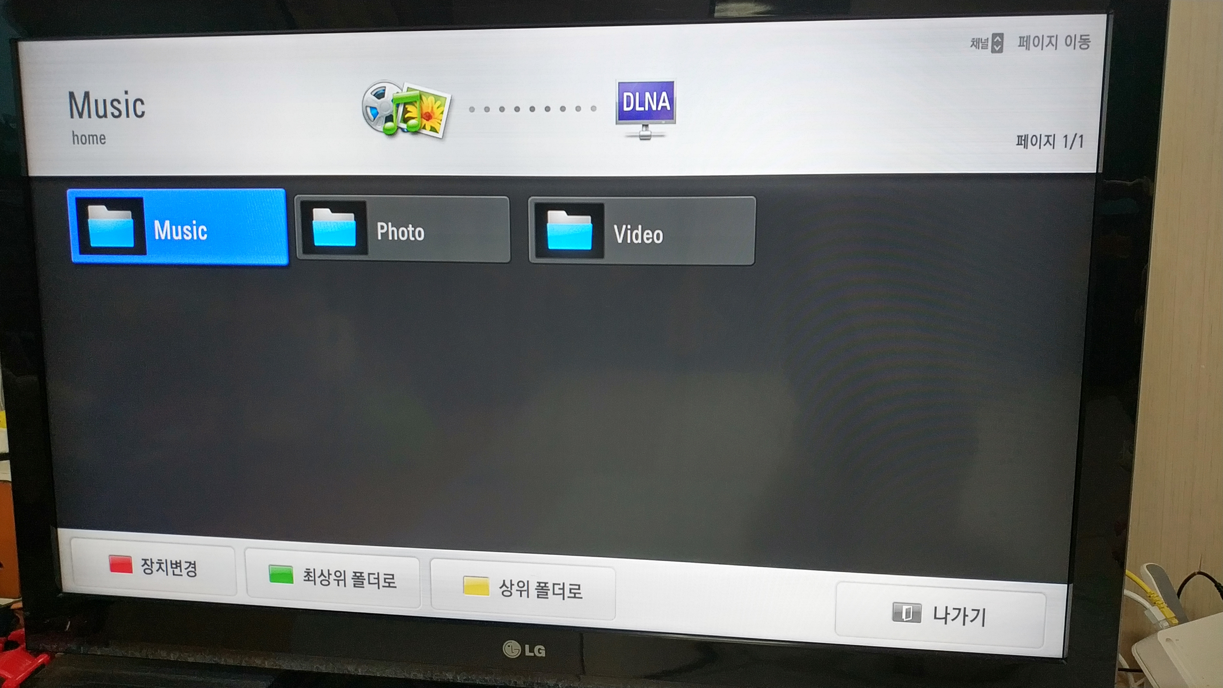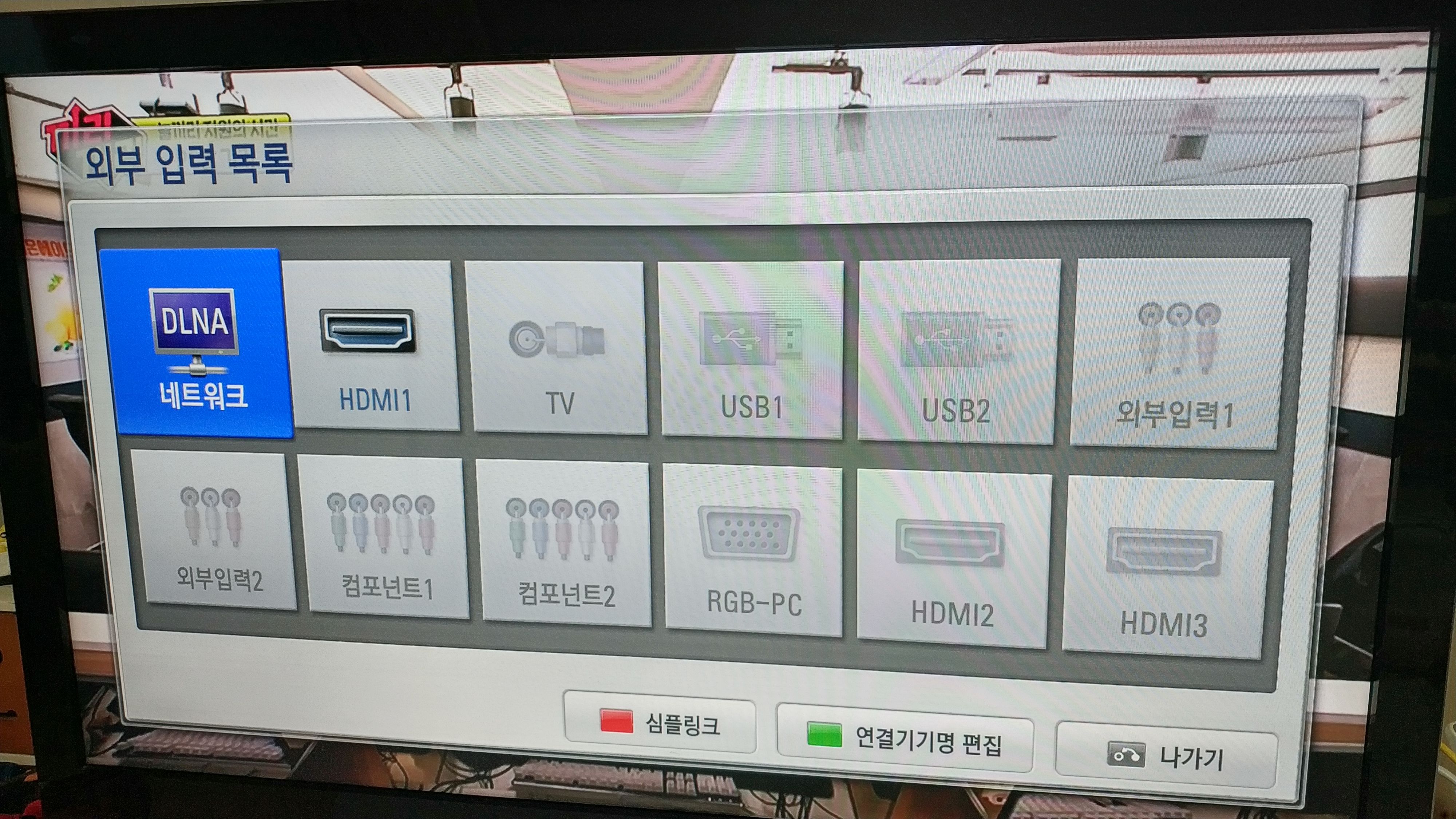 TV에서 외부 입력 - DNLA 를 선택한다.