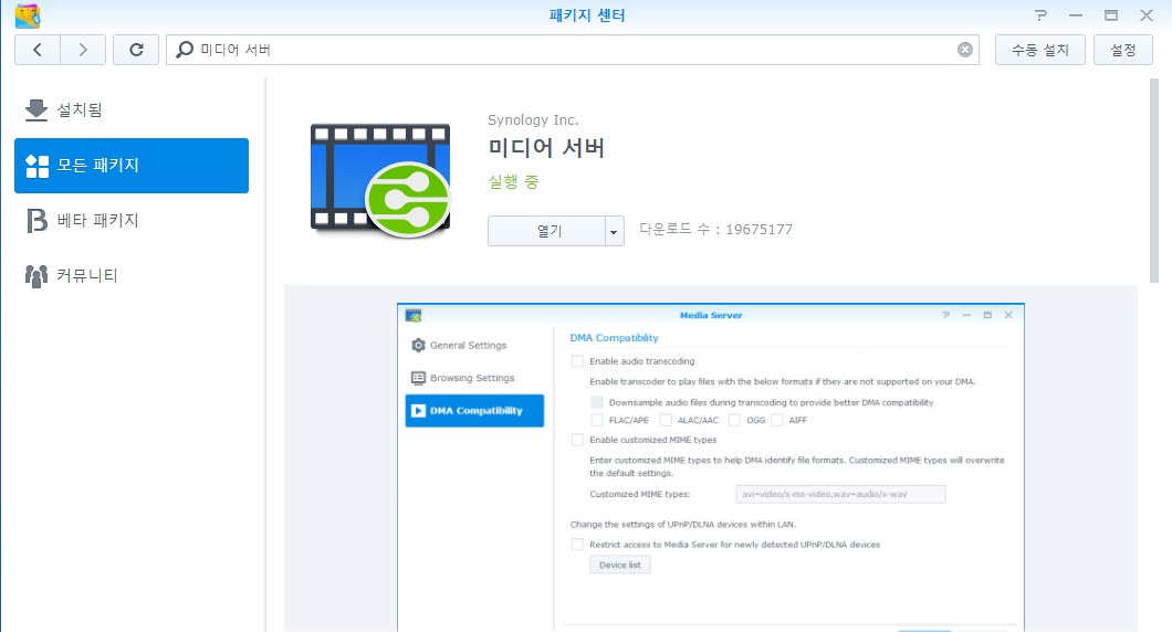 미디어 서버 가 사용으로 되어 있는지 확인하자.