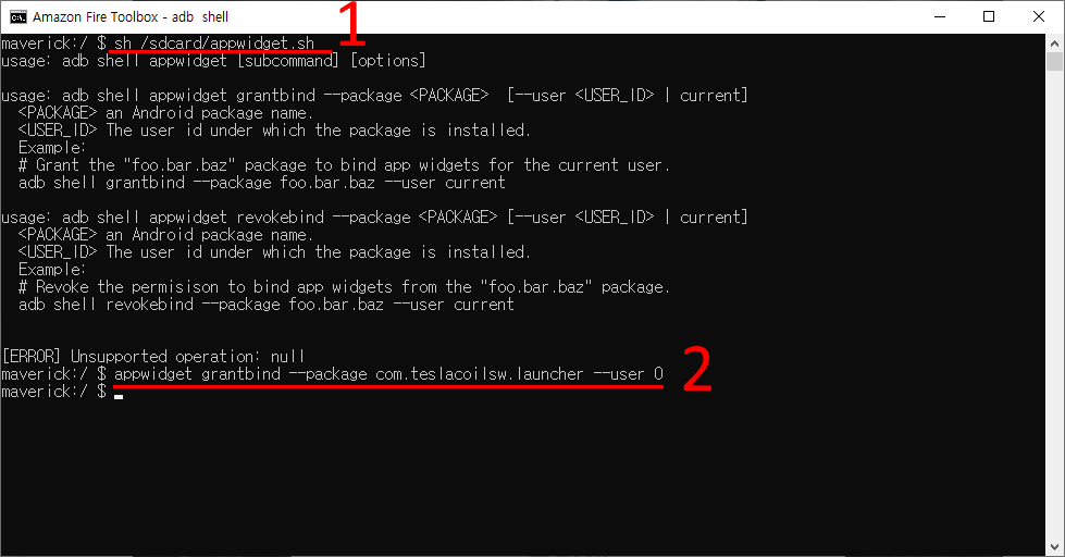 ( 명령어를 한개씩 마우스로 드래그 후 키보드 ctrl+C -> adb shell 에서 마우스 우클릭 후 엔터키 )
