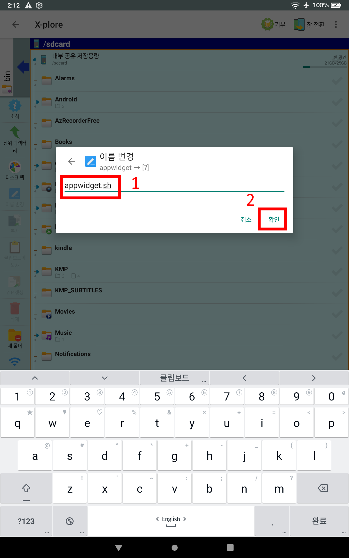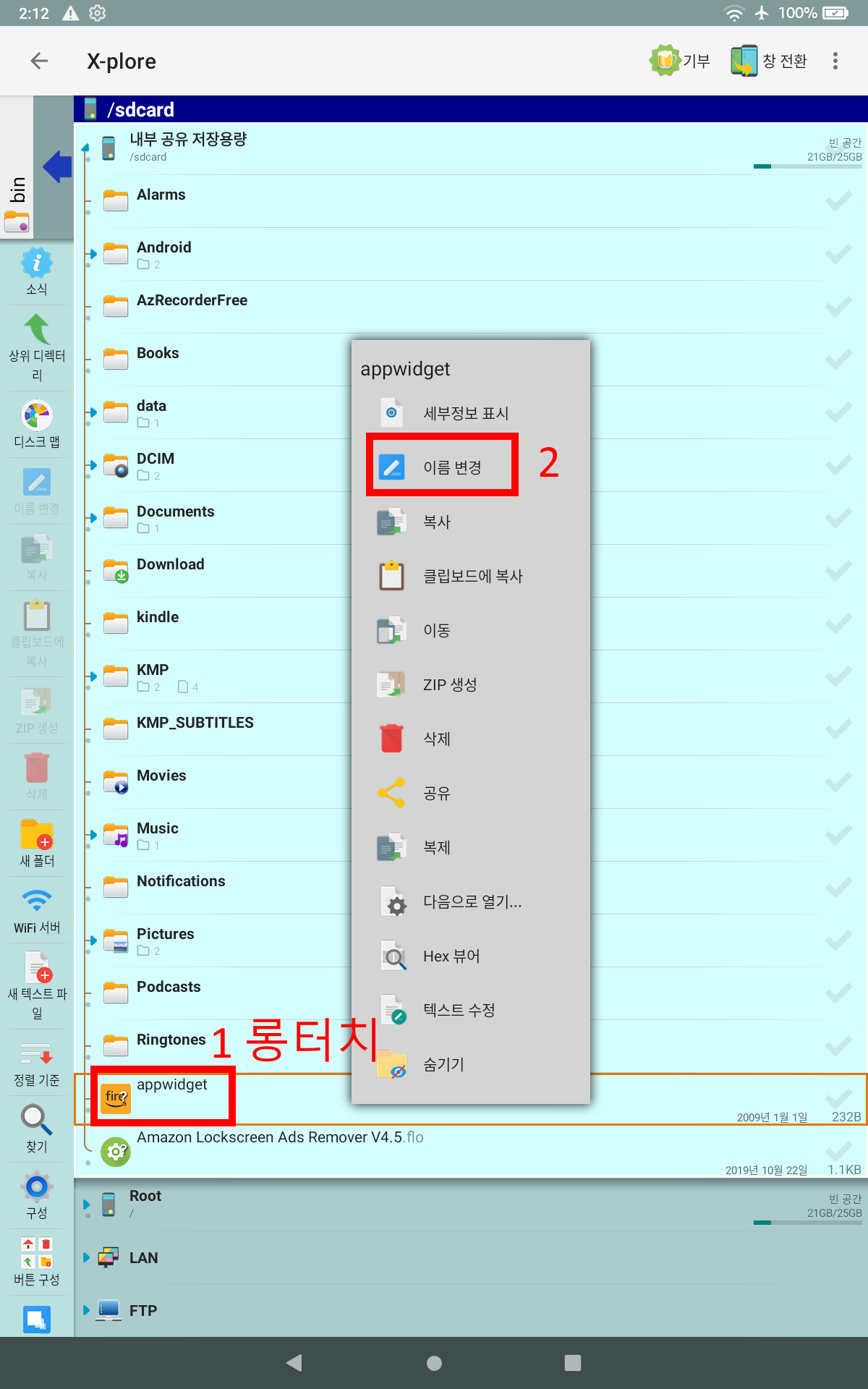 [ 내부 공유 저장용량 ]에 복사된 appwidget 파일을 롱터치 하여 이름을 변경한다.