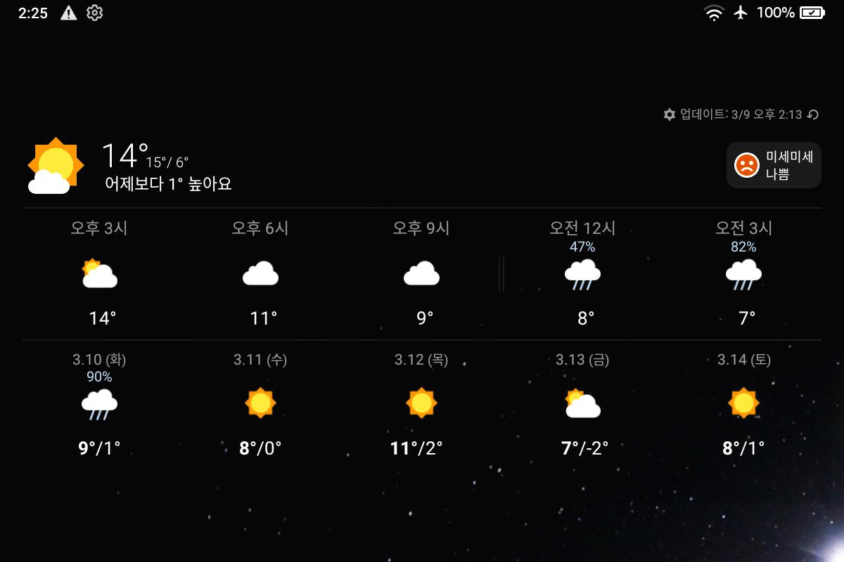 날씨 위젯을 실행하였는데 무한 로딩만 되는 현상이 발생하였다.