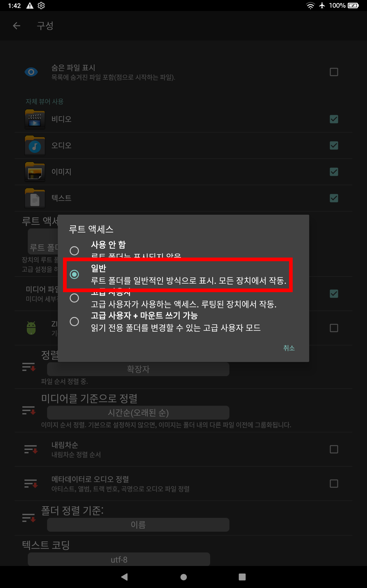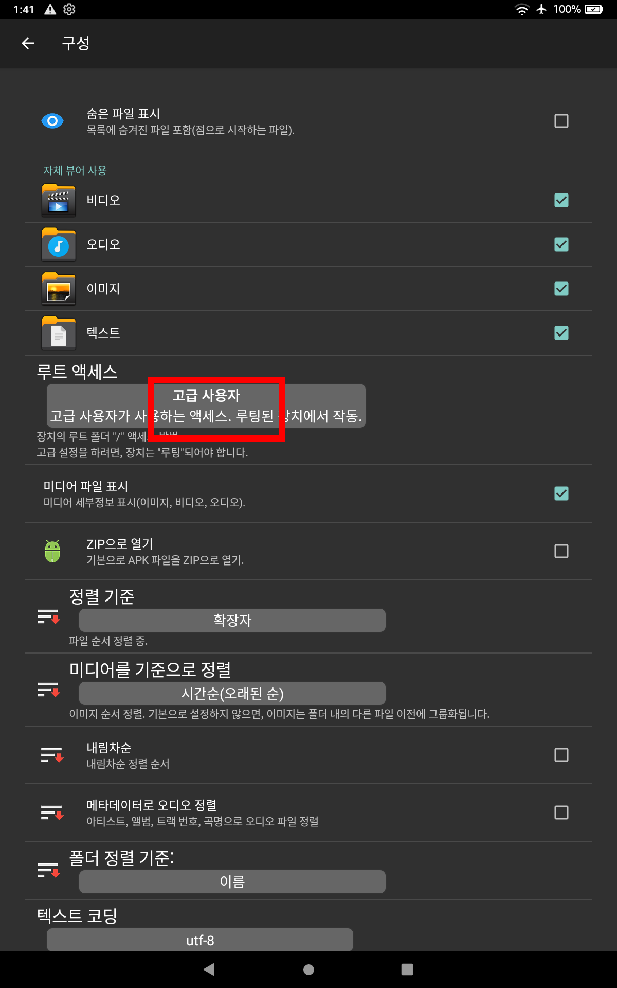 설정 -> 구성 -> 루트 액세스 -> 일반 으로 변경한다.