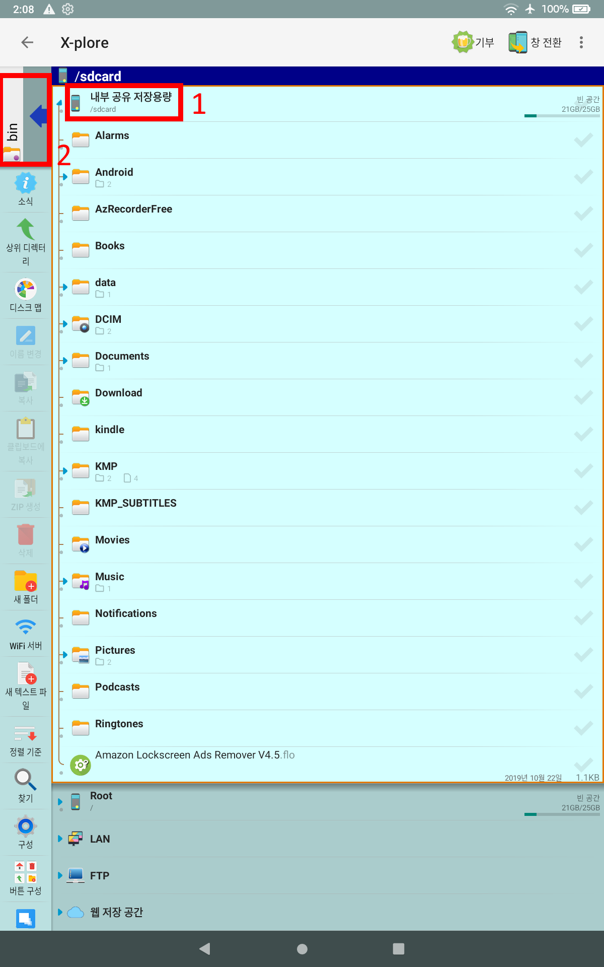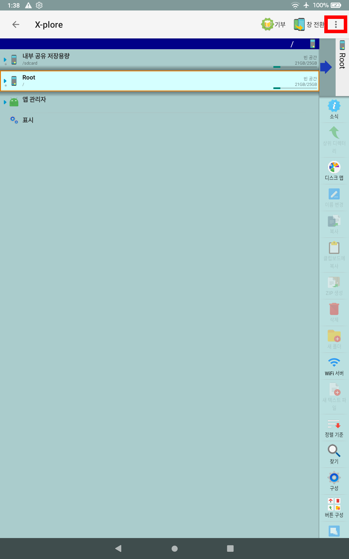 1. X-plore 앱을 설치하고 실행한다.