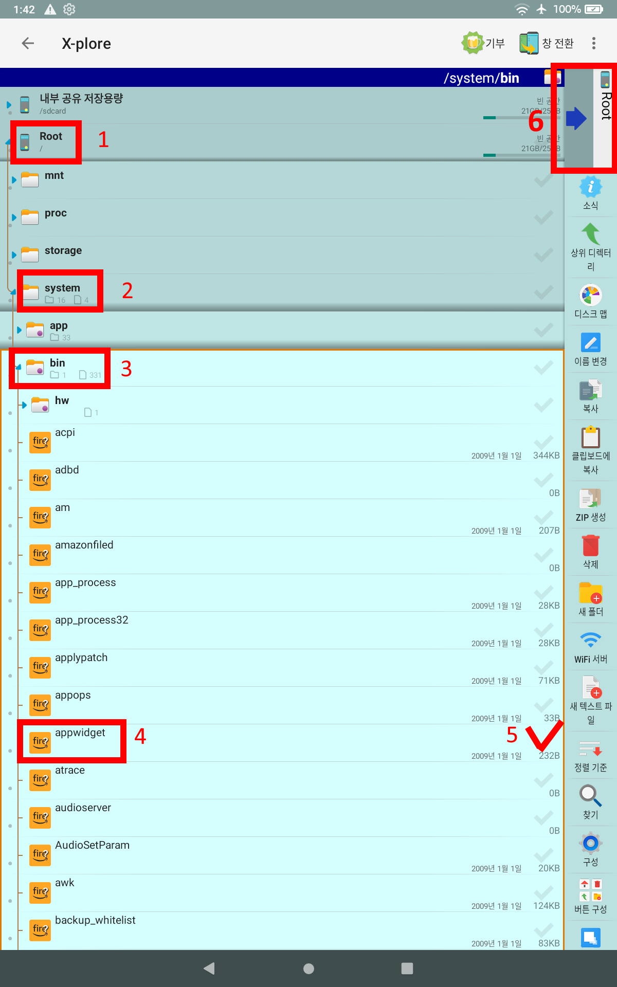 Root / system / bin 에서 appwidget 파일을 체크하고