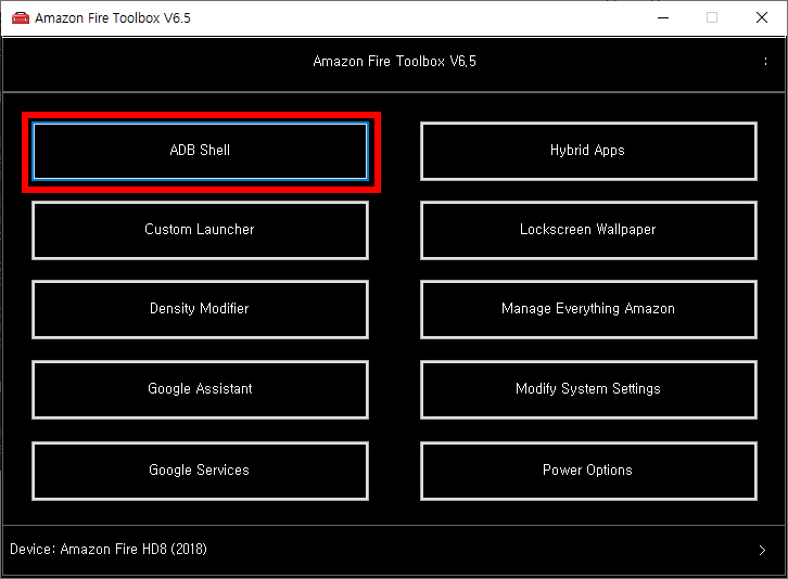Fire HD10 과 PC 를 USB로 연결하고 Toolbox 를 실행한다.