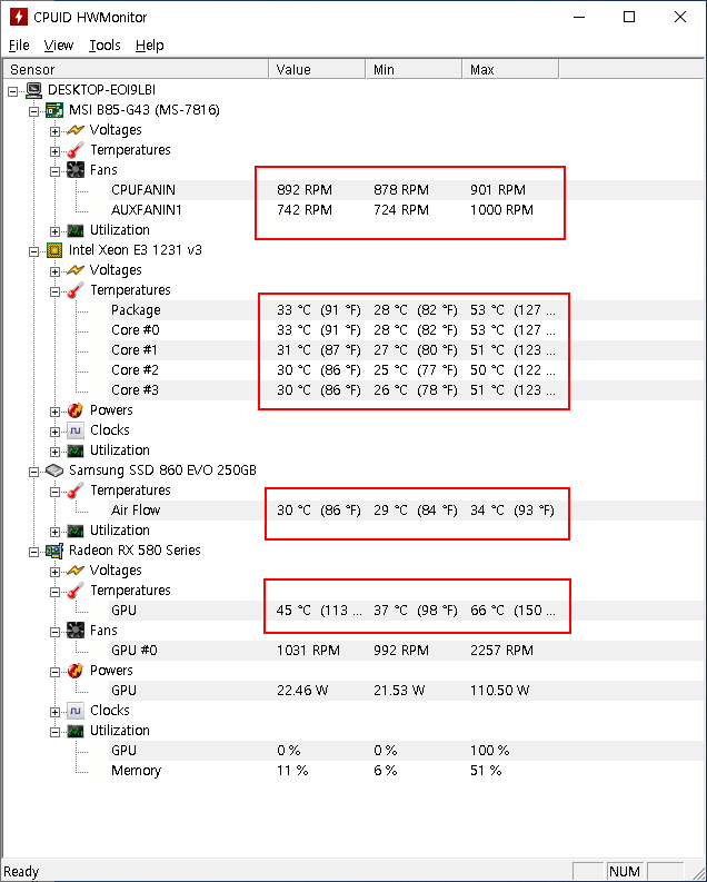 (AUXFANIN1 은 후면 팬 RPM 값이다.)