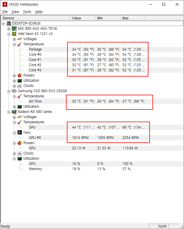 RX580의 팬 속도를 조금 더 낮춰 소음을 줄일 수 있는 여유가 생겼다.
